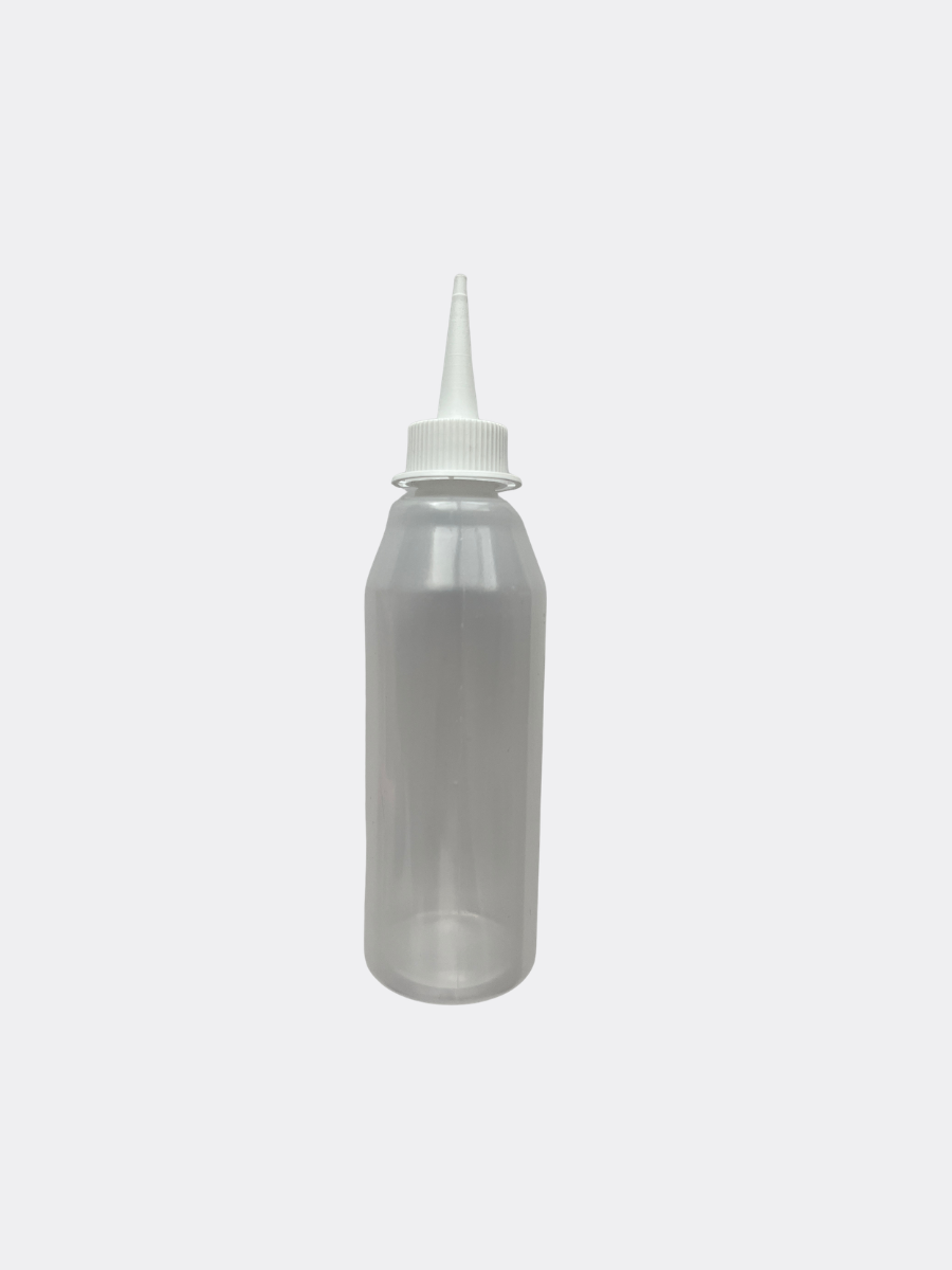 Beccuccio (Pipetta): Integrato nel tappo, presenta una punta sottile e conica. Questo design è pensato per l’applicazione mirata di gocce o di un flusso sottile di prodotto.